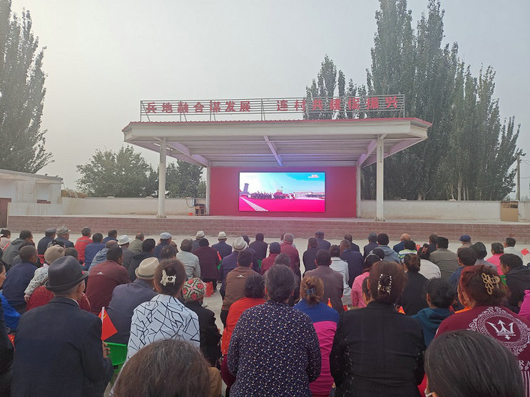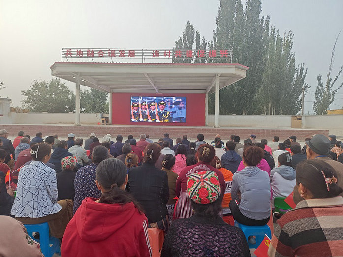 兵團十一師建咨集團駐村工作隊組織當?shù)厝罕娪^看抗戰(zhàn)勝利80周年大會直播