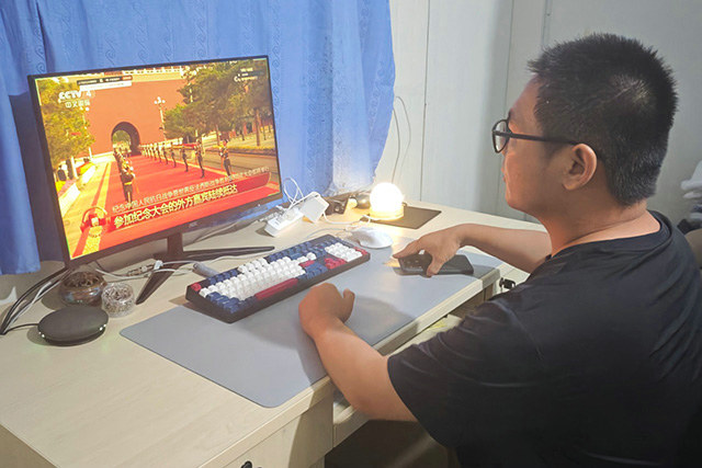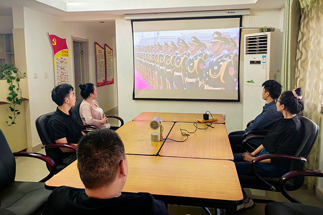 上午9時,雄壯的國歌在天安門廣場莊嚴奏響,四川資陽分公司會議室全體人員肅立齊唱國歌,神情莊重專注。當徒步方隊步伐鏗鏘、裝備方隊威武行進、空中梯隊呼嘯而過時,會議室屢屢爆發(fā)出熱烈掌聲和由衷贊嘆。這一刻,屏幕內(nèi)外熱血奔涌,家國情懷激蕩交融。(張玲麗供稿)