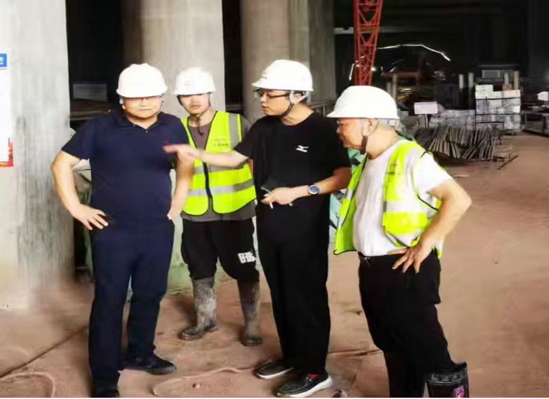 總承包部副指揮長兼安全總監(jiān)朱丹(右2)在九曲河出入場線現(xiàn)場巡查