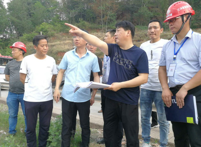4月25日,莊乾理董事長在對管區(qū)沿線進行現場踏勘時,與前來檢查工地的仁沐新高速公路有限公司董事長劉勇、總經理姜杰明、副總經理向可明一行巧遇。在現場,業(yè)主方聽取了項目負責人關于LJ16標段情況介紹,以及項目部臨時設施場站規(guī)劃情況匯報。然后,莊乾理董事長就項目總體規(guī)劃部署及施工思路與仁沐公司董事長劉勇進行了交流。