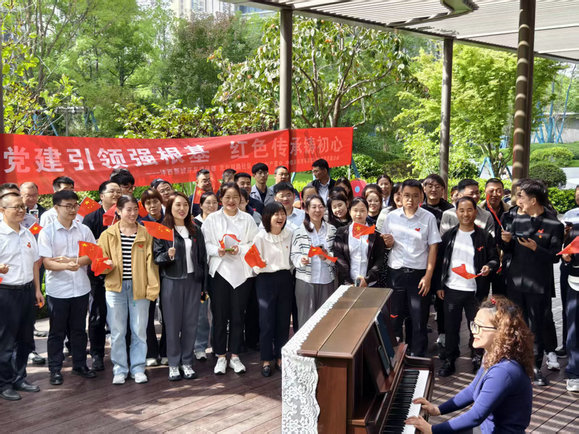 活動(dòng)伊始,大家共同參觀了中鐵灃河灣項(xiàng)目紅色會(huì)客廳。“黨的光輝歷程”等主題板塊內(nèi)容豐富、引人駐足,大家在回顧黨史中感悟思想偉力,從歷史回響里汲取奮進(jìn)力量。隨后,活動(dòng)圍繞紅色讀書會(huì)、紅色詞語(yǔ)接龍、紅色主題音樂(lè)會(huì)、黨建知識(shí)競(jìng)答展開(kāi),各環(huán)節(jié)緊扣紅色主題,讓大家在書香中感悟初心,在互動(dòng)中重溫紅色記憶,在旋律中厚植家國(guó)情懷?,F(xiàn)場(chǎng)還設(shè)置了紅掌奪寶、精準(zhǔn)投擲、“四渡赤水” 等情景互動(dòng)游戲,將黨史故事融入趣味體驗(yàn),讓大家在協(xié)作比拼中重溫革命歷史、感悟黨的奮斗精神?;顒?dòng)在《歌唱祖國(guó)》合唱中緩緩落下帷幕,激昂的歌聲映照著國(guó)慶前夕的熱烈氛圍,既凝聚了企地同心的深厚情誼,更堅(jiān)定了各方共促發(fā)展的信心。