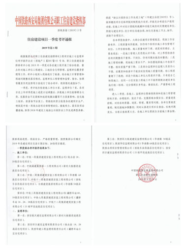 (西安訊)4月19日,中國(guó)鐵路西安集團(tuán)有限公司職工住房建設(shè)指揮部發(fā)布了住房建設(shè)項(xiàng)目一季度考評(píng)通報(bào),在本次檢查的8家施工單位,中鐵一局南郊棚改項(xiàng)目部再次榮獲季度綜合考評(píng)第一名,受到特別表?yè)P(yáng)。