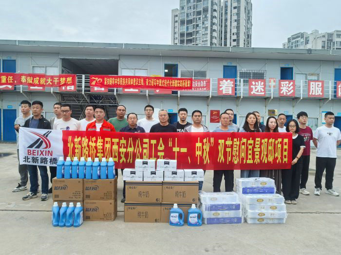 金秋送爽,丹桂飄香,“國(guó)慶、中秋”雙節(jié)來(lái)臨前夕,北新路橋集團(tuán)西安分公司宜景觀邸項(xiàng)目工會(huì)小組精心組織開(kāi)展雙節(jié)慰問(wèn)活動(dòng),向堅(jiān)守在施工一線的全體職工及默默支持的家屬們傳遞關(guān)懷與溫暖。