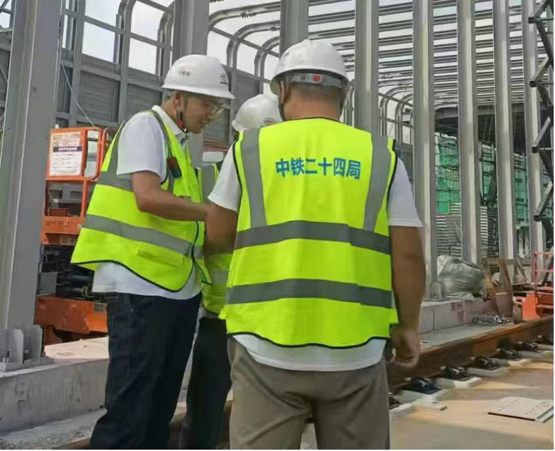 攻堅(jiān)之要,重在“親抓”,以靠前指揮凝聚奮進(jìn)合力。鋪軌現(xiàn)場(chǎng)的條件艱苦,軌排鋪設(shè)時(shí)空間狹小、機(jī)械穿梭,夏季悶熱、冬季濕冷,但項(xiàng)目部領(lǐng)導(dǎo)干部始終堅(jiān)持“一線(xiàn)工作法”,把辦公室搬到施工最前沿。面對(duì)交叉作業(yè)多、協(xié)調(diào)難度大的問(wèn)題,項(xiàng)目經(jīng)理王磊、黨支部書(shū)記糜晶龍、總工程師葛賦主動(dòng)牽頭對(duì)接土建、機(jī)電等兄弟班組,現(xiàn)場(chǎng)協(xié)商施工順序,避免工序沖突延誤工期;看到作業(yè)人員為趕進(jìn)度連飯都顧不上吃,他們親手把熱飯熱湯送到現(xiàn)場(chǎng),傾聽(tīng)大家的需求與難題,及時(shí)調(diào)整輪班制度,保障作業(yè)人員的體力與安全;遇到技術(shù)瓶頸時(shí),更是與技術(shù)人員、老工人圍坐在一起,拿著圖紙反復(fù)推演,手把手指導(dǎo)優(yōu)化施工方案。“領(lǐng)導(dǎo)在一線(xiàn),我們就有主心骨”,干部的“親力親為”,化作了全體作業(yè)人員的“同心同向”,凝聚起上下一心、并肩作戰(zhàn)的強(qiáng)大合力。