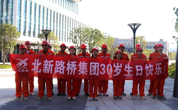 南平訊(通訊員 馬軼鋒)10月24日,福建分公司武夷新區(qū)市政項目員工在已建成商務(wù)工程前集體祝福北新路橋集團(tuán)成立30周年。