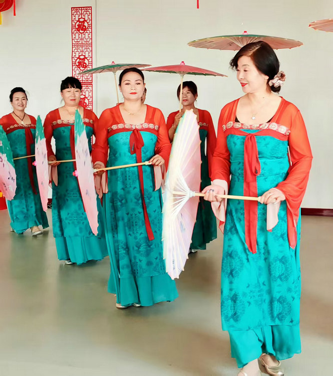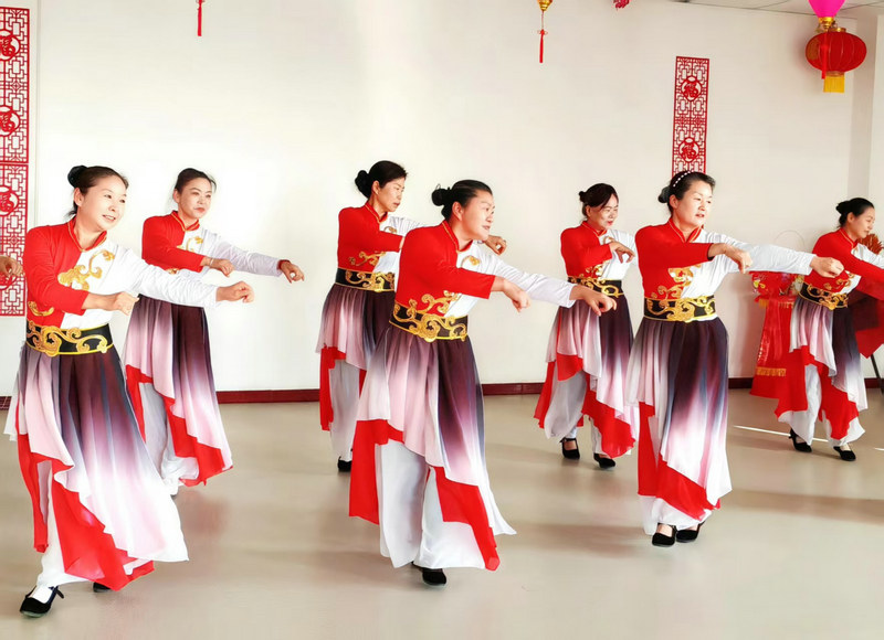 圖2為:奇臺(tái)農(nóng)場(chǎng)三十里大墩社區(qū)“夕陽紅業(yè)余演出隊(duì)”的演員們,表演的歌舞《江南秀》,受到了六師奇臺(tái)農(nóng)場(chǎng)110社區(qū)吾家樂寶養(yǎng)老院長(zhǎng)者們的喜愛。