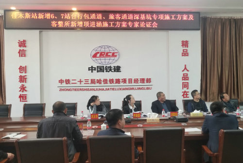 近日,佳木斯站新增6、7站臺及頂進涵施工方案專家論證會在中鐵二十三局集團二公司哈佳鐵路項目部八樓會議室召開,會議對方案的可行性進行了論證,為早日動工奠定了基礎(chǔ)。