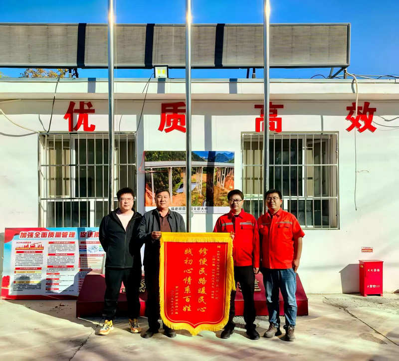 石河子迅(通訊員 吳玉梅)近日,北新路橋集團(tuán)兵團(tuán)交建公司第六師106團(tuán)-第八師148團(tuán)公路項(xiàng)目部院內(nèi)暖意融融,新湖六連干部職工代表將一面繡有“修便民路暖人心 踐初心情系百姓”的鮮紅錦旗贈(zèng)予該項(xiàng)目,表達(dá)對(duì)項(xiàng)目部積極伸出援手解決連隊(duì)出行難題的誠(chéng)摯謝意。