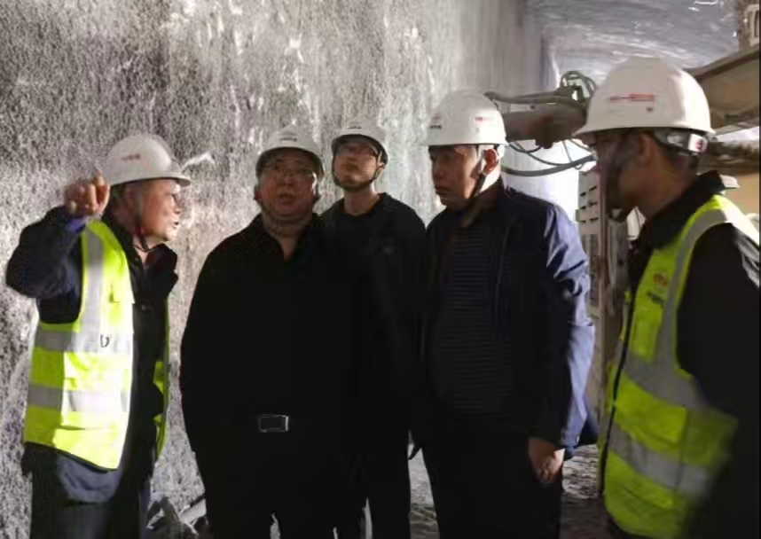 總承包部副指揮長李燕斌(右3)深入中梁山隧道現(xiàn)場檢查督導