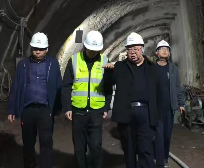總承包部指揮長李兵(右2)深入隧道施工現(xiàn)場(chǎng)排查