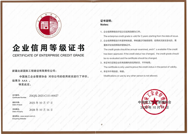 展望未來,北新國際將以此為新的起點(diǎn),珍惜榮譽(yù),再接再厲,繼續(xù)秉承“誠信、創(chuàng)新、擔(dān)當(dāng)、共贏”的核心價(jià)值觀,以更高標(biāo)準(zhǔn)要求自我,不斷提升工程品質(zhì)與管理水平,持續(xù)鞏固和深化信用體系建設(shè)成果,以更加優(yōu)異的業(yè)績回報(bào)社會各界的信任與支持,為促進(jìn)行業(yè)高質(zhì)量發(fā)展、服務(wù)國家經(jīng)濟(jì)建設(shè)作出新的更大貢獻(xiàn)。
