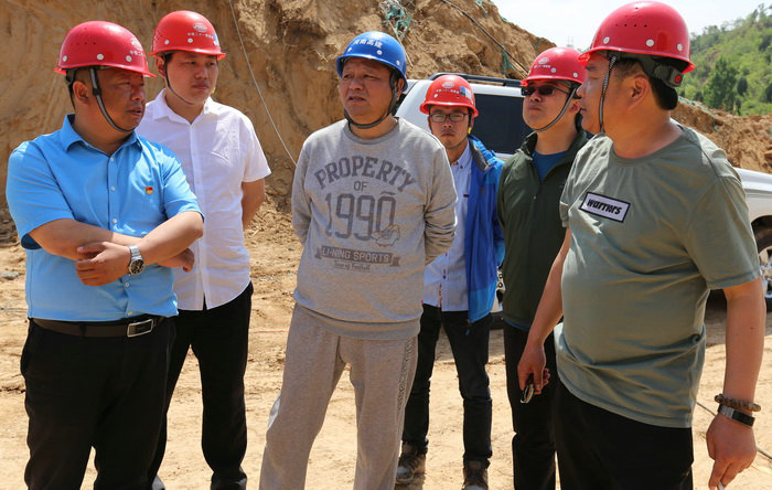 項(xiàng)目班子成員與總監(jiān)徐艷軍(左三)現(xiàn)場研究改道方案