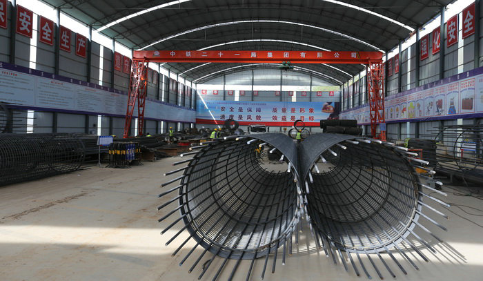 圖為鋼構(gòu)廠加工鋼筋籠工期壓力前所未有,地方政府環(huán)保管控力度空前,在這雙重的巨大壓力下,滎陽G234項(xiàng)目部不僅沒有被壓垮,反而激發(fā)出了他們無窮的潛能。為了業(yè)主的重托,為了企業(yè)的信譽(yù),他們拼了,發(fā)起了一次又一次集團(tuán)沖鋒。副經(jīng)理兼計(jì)劃部長王輝說:“今年前三個月完成產(chǎn)值1.2億元,4月上升到7千萬,5月份計(jì)劃完成8千萬元。”公司副總經(jīng)理雷榮仁表示,6月份產(chǎn)值將達(dá)到1億元。就在截稿時(shí)又傳來好消息,5月份在業(yè)主、監(jiān)理組織開展的“質(zhì)量月”活動中,項(xiàng)目部獲得獎勵50萬元。