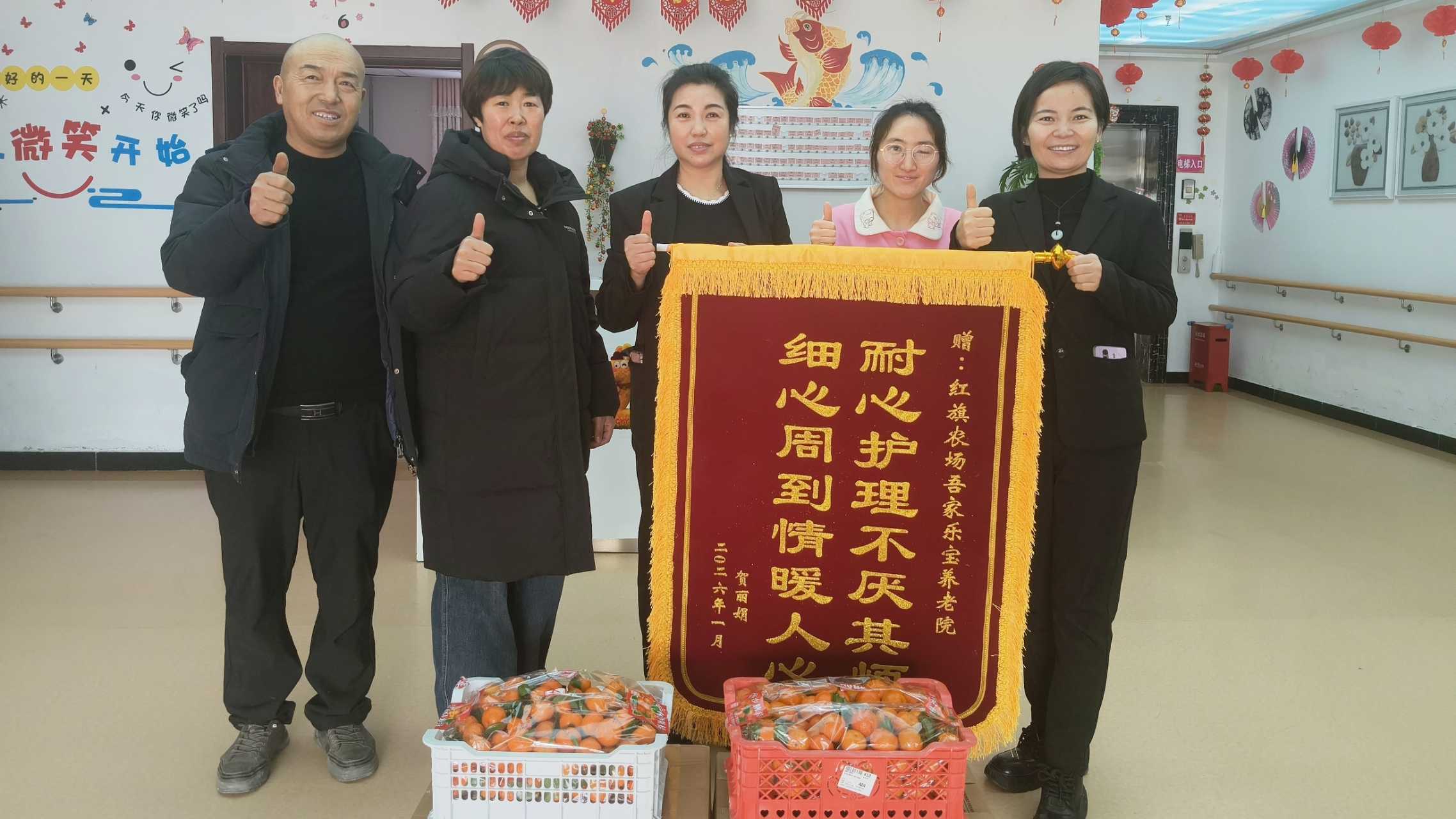 中國(guó)鐵路工程建設(shè)網(wǎng)訊(通訊員王蕊報(bào)道)2026年1月15日,新春將至的第六師紅旗農(nóng)場(chǎng)吾家樂(lè)寶養(yǎng)老院暖意融融。賀貴財(cái)老人的家屬專程趕來(lái),將一面飽含敬意的錦旗與兩份橘子、一件香蕉、一件蘋果等愛心水果,鄭重送到工作人員手中,用最質(zhì)樸的方式表達(dá)深切感念。