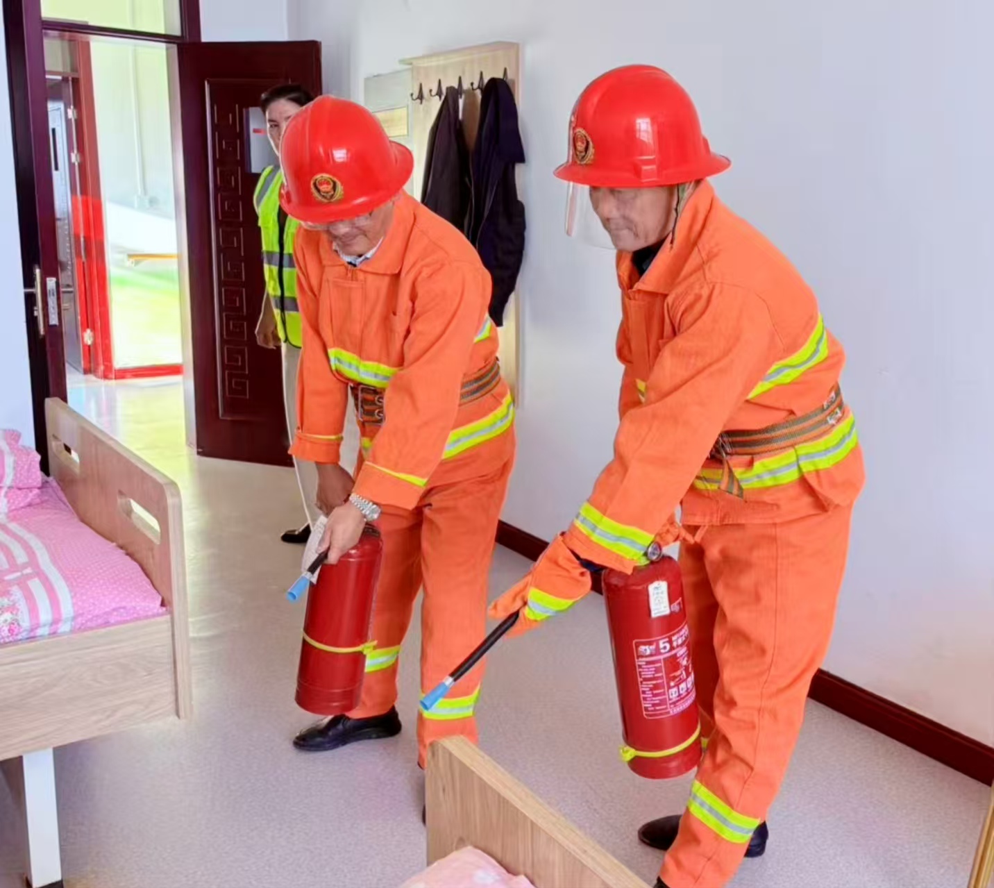 當(dāng)天下午,隨著演練指令發(fā)出,立即啟動消防應(yīng)急預(yù)案,該院員工迅速明確分工、有序開展行動。疏散組按照預(yù)定路線,引導(dǎo)在院長者彎腰捂鼻、全程攙扶行動不便的老人安全有序撤離,快速轉(zhuǎn)移至指定安全集合點(diǎn)。滅火組人員攜帶滅火器,快速奔赴“火情”現(xiàn)場,精準(zhǔn)操作實(shí)施撲救。整個(gè)演練過程井然有序,各個(gè)環(huán)節(jié)嚴(yán)格按照應(yīng)急預(yù)案規(guī)范操作,達(dá)到了預(yù)期演練效果。