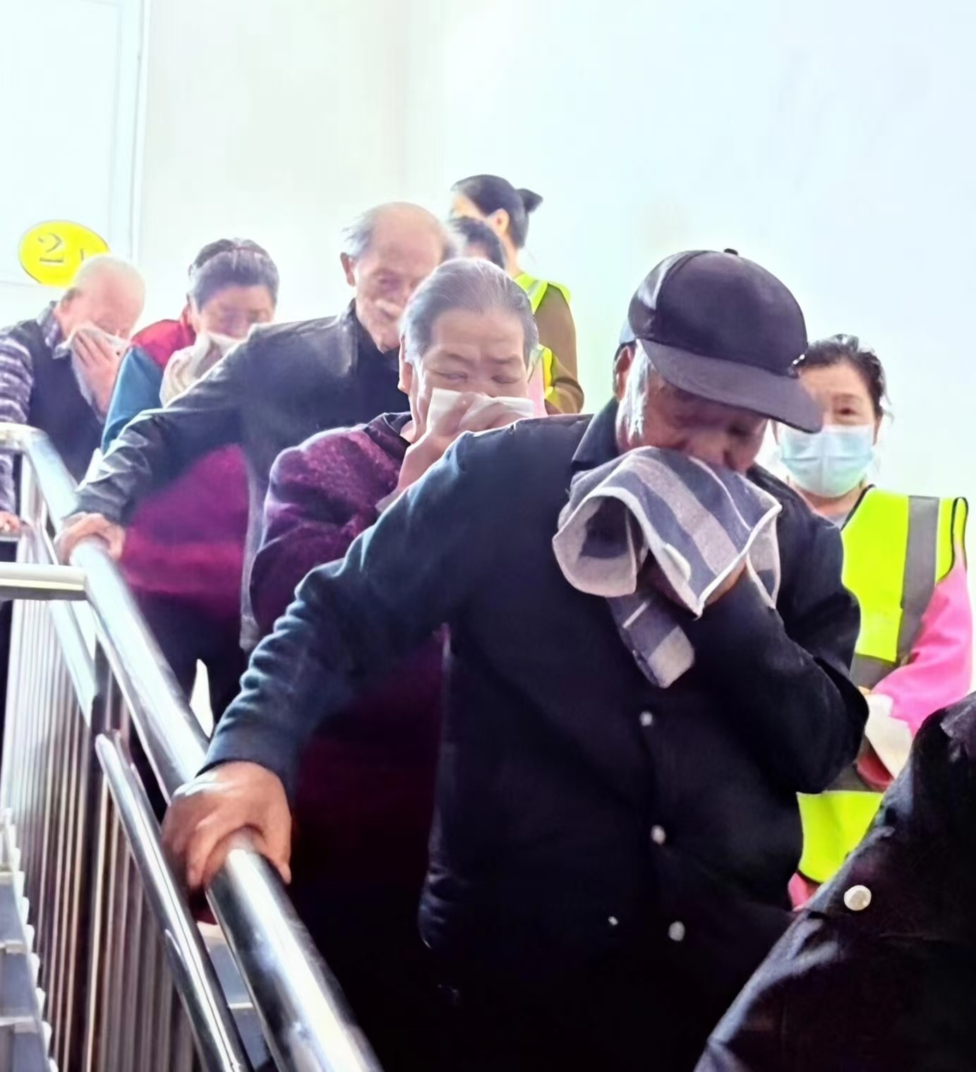 圖2為:在消防應(yīng)急演練中,該院疏散組按照預(yù)定路線,引導(dǎo)在院長者彎腰捂鼻、全程攙扶行動不便的老人安全有序撤離。