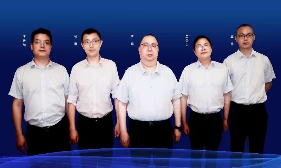 總承包部“科技創(chuàng)新工作室”指揮長李兵(右3)、副指揮長兼總工程師楊振(左2)等主要成員