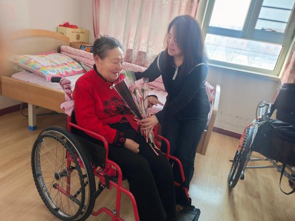 工作人員與長者親切交談,細(xì)心詢問身體狀況和生活需求,陪伴長者閑話家常,用陪伴與關(guān)愛傳遞溫暖。此次送鮮花活動(dòng),不僅為長者帶來了節(jié)日的儀式感與幸福感,更弘揚(yáng)了尊老、敬老、愛老、助老的傳統(tǒng)美德,讓女性長者真切感受到養(yǎng)老院的關(guān)懷與呵護(hù)。