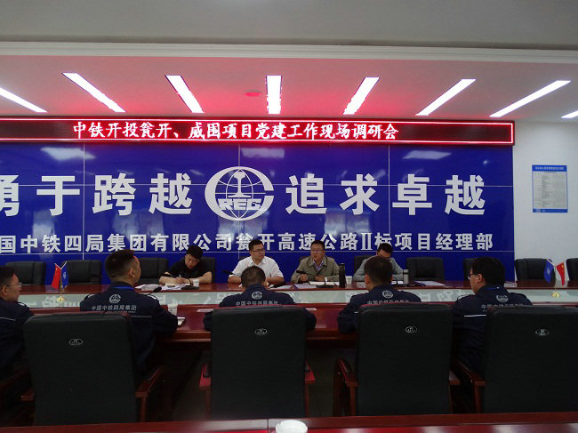 5月19日上午,中鐵開(kāi)投甕開(kāi)、威圍高速指揮部聯(lián)合黨工委書(shū)記陳勇、副書(shū)記苑慶鋒、紀(jì)工委書(shū)記、副指揮長(zhǎng)葉志賓一行,蒞臨中鐵四局甕(安)—開(kāi)(陽(yáng))高速公路Ⅱ標(biāo)項(xiàng)目部召開(kāi)聯(lián)合黨建工作調(diào)研會(huì),項(xiàng)目經(jīng)理、書(shū)記及全體黨員陪同調(diào)研。