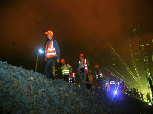 晚上19:30分,駐站聯(lián)絡員下達了封鎖命令號,隨著現(xiàn)場施工負責人的一聲令下,施工機械、作業(yè)人員迅速行動,并按照施工前的技術交底和各項分工迅速奔向各自的工作崗位,五分鐘后全員到達了既定的“手術點”。