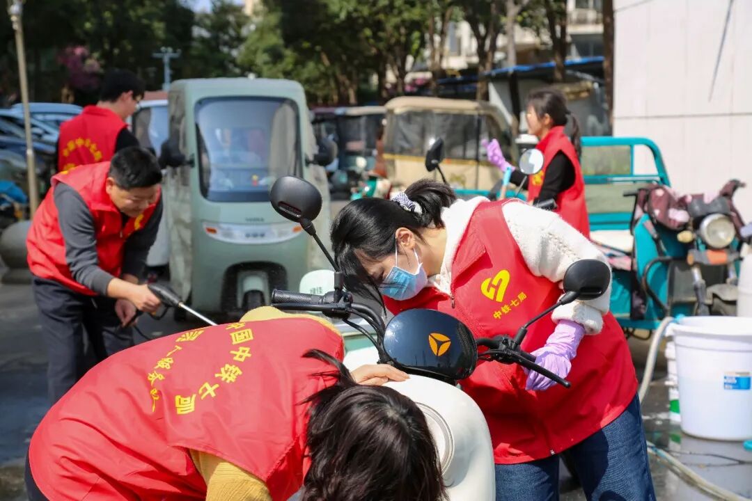 當日,由中鐵七局中產置業(yè)、中產物業(yè)、中鐵七局社區(qū)聯(lián)合組建的小七安居服務隊,走進石化路小區(qū)52號院開展首場便民服務活動,通過免費清洗電動車、清理衛(wèi)生死角等務實舉措,切實為居民辦實事、辦好事。