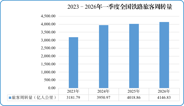 圖2 2023—2026年一季度全國(guó)鐵路旅客周轉(zhuǎn)量