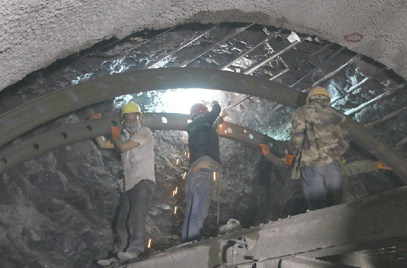 觀摩黃山哨隧道出口掌子面初支施工