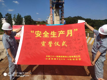 近日,中鐵二十一局四公司興泉鐵路4標(biāo)項(xiàng)目部全體職工在琴江特大橋舉行了2019年“安全生產(chǎn)月”及“安全生產(chǎn)萬里行”活動(dòng)宣誓及簽字儀式。