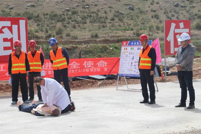 演練前首先由民樂縣中醫(yī)院醫(yī)護人員為全體參演人員講解心肺復蘇、傷員緊急處理等現(xiàn)場急救常識,隨后依次開展了高處墜落、機械傷害應急演練,演練過程中,各小組成員各司其職,緊密配合,最大程度的模擬了真實事故應急救援。演練結束后,由項目經(jīng)理張高放對本次演練進行了總結,他強調:本次演練雖然結束,但全體管理人員決不能放松安全管理工作,我們要以目前開展的“安全生產(chǎn)月”活動為契機,扎實有效地開展問題隱患排查和整治工作,使項目部的安全管理工作上一個新臺階。最后,由總監(jiān)辦領導及項目公司領導分別對本次演練進行了點評。
