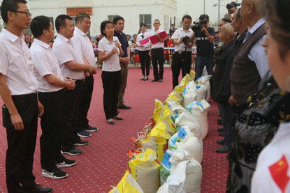 節(jié)目中間,且末縣黨委宣傳部、三十七團(tuán)黨委常委、中鐵二十一局四公司和若鐵路項(xiàng)目部為貧困村民代表發(fā)放了米、面、油等慰問品,讓村民們真真切切感受到黨和國(guó)家的溫暖。