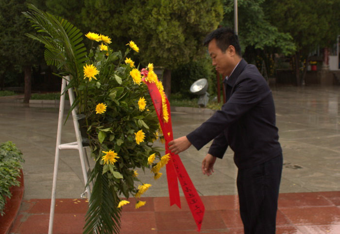 公司副總經(jīng)理、平天項(xiàng)目黨支部書記魏惠民為英烈敬獻(xiàn)花籃