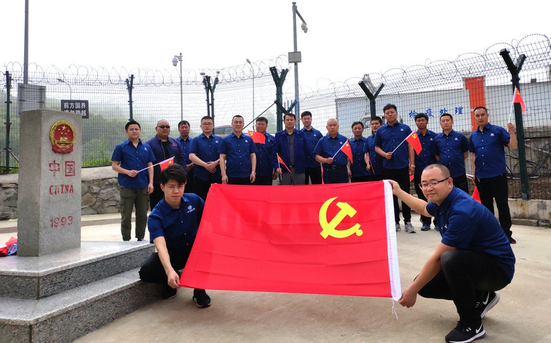 步入中俄邊境綏芬河國門的那一刻,大家心潮澎湃、熱血沸騰。莊嚴(yán)大氣的國門城樓,國旗飄揚(yáng),國徽閃耀,“中華人民共和國”七個(gè)鮮紅大字耀眼奪目。腳踏堅(jiān)實(shí)國土,高擎鮮紅黨旗,仰望高高飄揚(yáng)的五星紅旗,祖國在我心中。 “慶祝建黨98華誕,祝福祖國繁榮昌盛”振聾發(fā)聵,大家耳熟能詳?shù)母枨?ldquo;我和我的祖國”回響在中俄邊境線。在熠熠生輝的界碑前合影,駐足國門城樓眺望邊城美景,為祖國的日益強(qiáng)大感到驕傲和自豪。