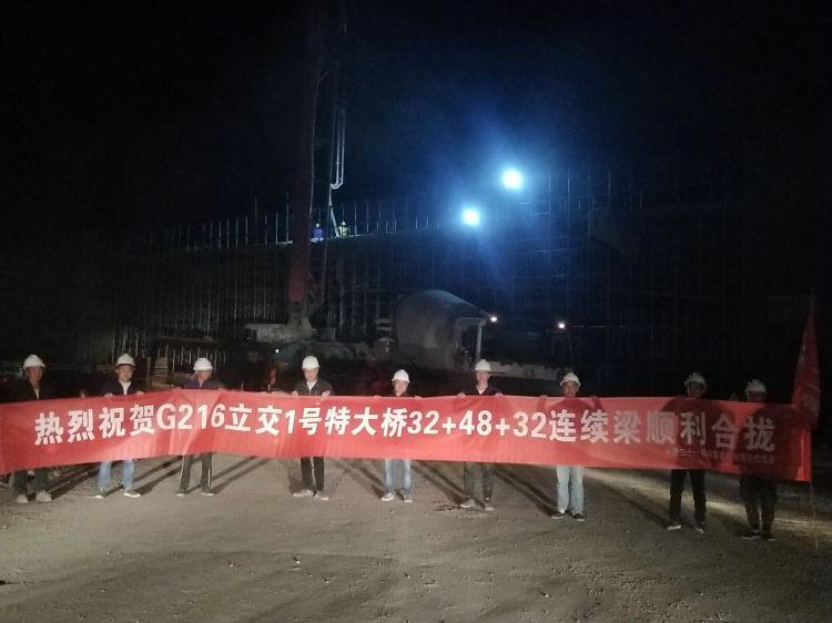 6月28日凌晨1點,重點工程G216立交1號特大橋(32+48+32)m連續(xù)梁順利合攏。該連續(xù)梁是我標段的重點控制性工程之一,項目部通過動態(tài)調整人材機等各項資源,將各管理人員下沉至施工一線、及時分析現(xiàn)場,及時指揮、超前謀劃,制定強有力保障措施,實行倒排工期、根據節(jié)點目標采取獎勵激勵等措施,在確保安全質量、環(huán)保的前提下完成了(32+48+32)m連續(xù)梁段的順利合攏。目前,該橋正在進行最后一聯(lián)連續(xù)梁緊張的施工任務中,預計在7.15節(jié)點目標之前完成合攏。