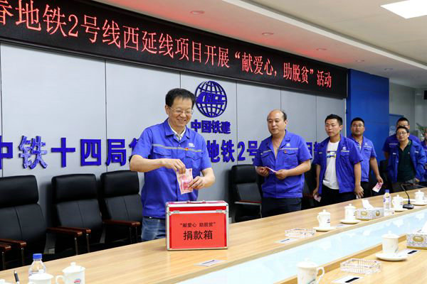 中國鐵路工程建設(shè)網(wǎng)訊(通訊員 蘭彩霞)為積極響應(yīng)集團公司、公司的號召,7月4日下午3:00,中鐵十四局集團長春地鐵2號線西延項目部黨支部舉行了“獻愛心,助脫貧”捐款活動。