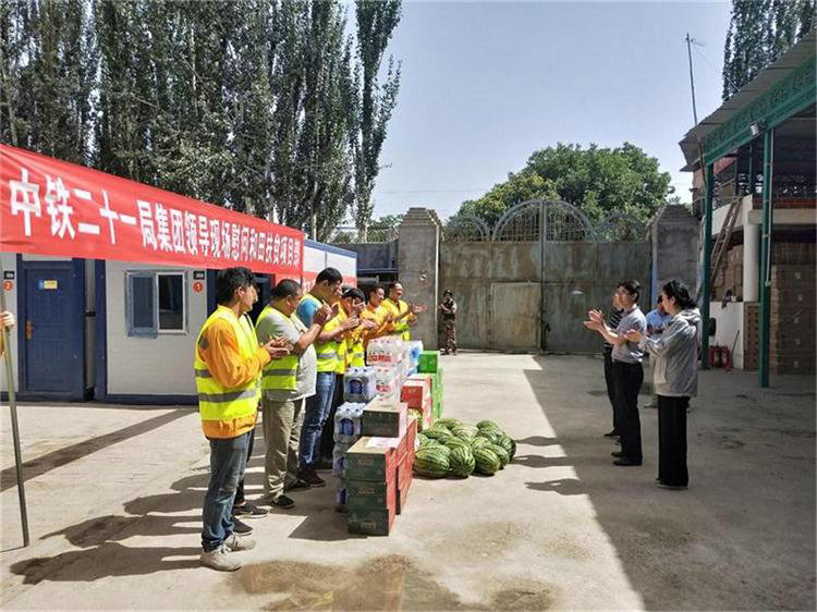 炎炎夏日 情系一線。7月7日,中鐵二十一局集團(tuán)公司黨委副書(shū)記、工會(huì)主席田愛(ài)平和工會(huì)組織權(quán)益部部長(zhǎng)余霞在一公司黨委副書(shū)記、紀(jì)委書(shū)記關(guān)崇屹陪同下到和田扶貧項(xiàng)目慰問(wèn)檢查指導(dǎo)工作。