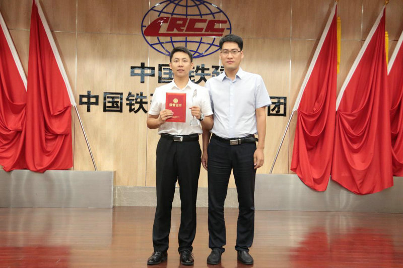 圖四、中國(guó)鐵建大橋局集團(tuán)人力資源部(黨委干部部)副部長(zhǎng)、團(tuán)委書記孫立偉為一等獎(jiǎng)選手頒獎(jiǎng)