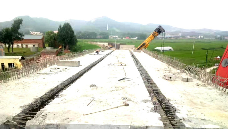 該橋為哈爾濱至牡丹江鐵路電氣化改造工程而設(shè),哈牡左線交叉點鐵路里程為K60+933.25,全長215米, 橋面寬8.0米,兩側(cè)設(shè)置0.5米寬防撞墻,其中第5孔跨越濱綏電氣化鐵路。立交橋上部結(jié)構(gòu)采用5×25m+3×30m預力混凝土簡支轉(zhuǎn)連續(xù)小箱梁,梁高1.4米,頂寬中梁2.4米、邊梁2.4米、底寬1.0米;下部結(jié)構(gòu)采用柱式橋墩,鉆孔灌柱樁基礎(chǔ),橋墩柱直徑1.2米,橋墩樁基直徑1.5米;樁基類型為摩擦樁。橋臺采用肋板式橋臺,工字型承臺,樁基礎(chǔ),樁徑為1.2米;橋墩均設(shè)置地系梁橫向聯(lián)結(jié),全橋蓋梁采用鋼筋混凝土結(jié)構(gòu)。