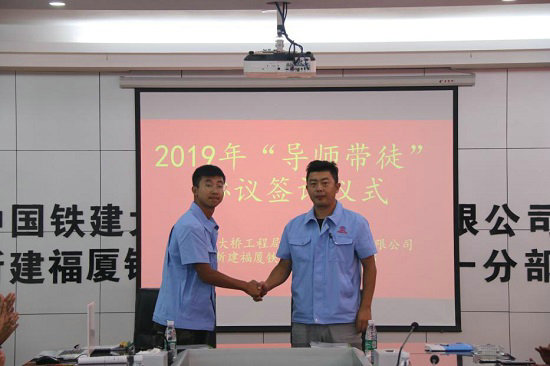 中鐵建大橋局一公司福廈鐵路項目舉行“導(dǎo)師帶徒”協(xié)議簽訂儀式