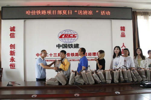 ?。ū揪W(wǎng)佳木斯訊)7月24日下午,當中鐵二十三局集團第二工程有限公司哈佳項目部副書記王維振帶著二公司工會的囑托,帶著項目部的心意走進佳木斯站6、7站臺工地,為奮戰(zhàn)在一線的員工送去了消暑的水、夏涼被以及風油精、藿香正氣水等防暑藥品時,這些清涼物品猶如一縷微風刮進員工的心。