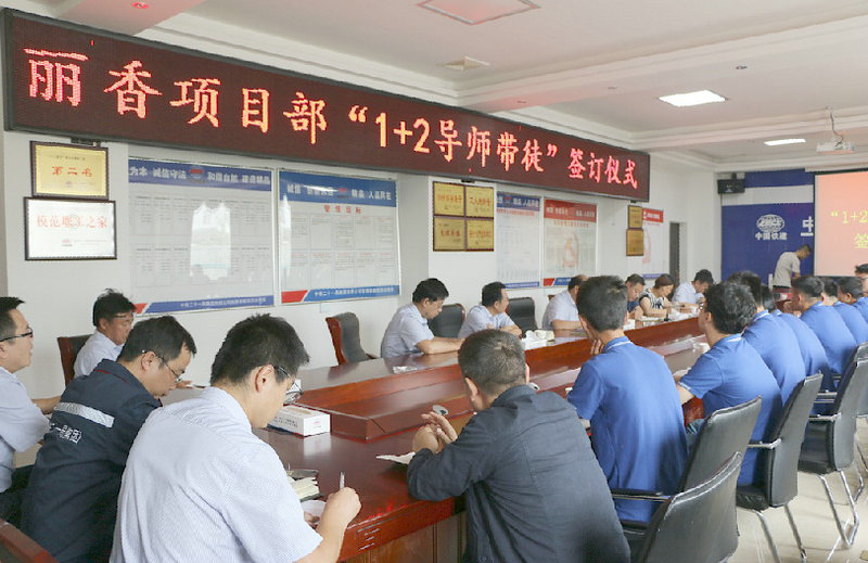 該項(xiàng)目承擔(dān)著麗江至香格里拉鐵路站前I標(biāo)段21.52公里的施工任務(wù),目前工程正處于攻堅(jiān)階段,全長3253米的文筆山二號(hào)隧道、全長4034米的黃山哨隧道及蒙古哨隧道進(jìn)口,均屬于高風(fēng)險(xiǎn)地質(zhì)構(gòu)造,在項(xiàng)目部、分部和架子隊(duì)三級(jí)管理下,各重難點(diǎn)工程平穩(wěn)推進(jìn)。隨著近年來不斷入職的大學(xué)畢業(yè)生經(jīng)過實(shí)踐鍛煉,陸續(xù)走上各個(gè)管理崗位,項(xiàng)目技術(shù)力量得到了不斷加強(qiáng)。今年又有9名大學(xué)本科生入職該項(xiàng)目,項(xiàng)目部領(lǐng)導(dǎo)及時(shí)為他們遴選了“導(dǎo)師”,建立了“師帶徒”關(guān)系,并及時(shí)進(jìn)行安全技術(shù)、施工規(guī)范培訓(xùn),為激勵(lì)他們成長,盡快熟悉工作環(huán)境,早日成為獨(dú)當(dāng)一面的技術(shù)骨干,奠定了堅(jiān)實(shí)基礎(chǔ),使他們對(duì)企業(yè)、對(duì)項(xiàng)目樹立了信心。