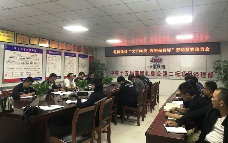 為順利實(shí)現(xiàn)扎倒公路全面通車(chē)節(jié)點(diǎn)目標(biāo),7月29日,中國(guó)鐵建中鐵十五局集團(tuán)一公司扎倒公路項(xiàng)目部組織召開(kāi)勞動(dòng)競(jìng)賽活動(dòng)動(dòng)員會(huì),安排部署8月和9月攻堅(jiān)通車(chē)目標(biāo)期間的生產(chǎn)建設(shè)工作任務(wù),以“大干60天 攻堅(jiān)保目標(biāo)”為主題的勞動(dòng)競(jìng)賽活動(dòng)正式拉開(kāi)帷幕。項(xiàng)目部各部門(mén)副職以上人員、現(xiàn)場(chǎng)技術(shù)管理人員,路基隊(duì)、拌合站和各施工隊(duì)負(fù)責(zé)人參加會(huì)議。