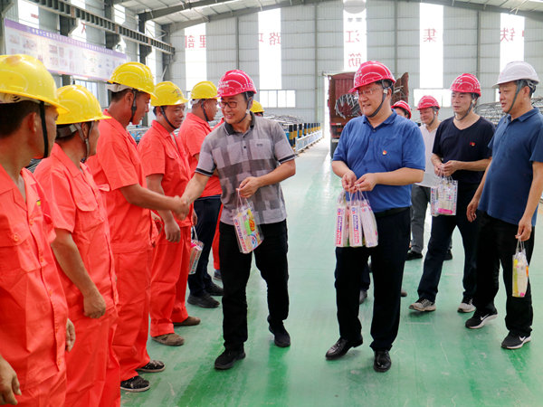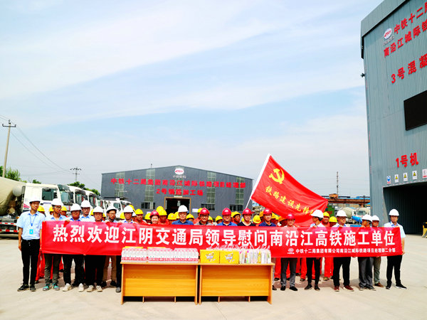 中國鐵路工程建設(shè)網(wǎng)江陰訊(通訊員 鄭建軍 張 慧)酷暑盛夏,驕陽似火。在連續(xù)多日將近40度高溫的南沿江城際鐵路建設(shè)工地,建設(shè)者們?nèi)淌苤鵁崂藫涿娴母邷匾廊痪o張繁忙的工作著。7月31日,江蘇省江陰市交通運(yùn)輸局副局長傅士才、鐵路建設(shè)服務(wù)中心主任謝曉東等領(lǐng)導(dǎo)帶隊(duì)專程前來慰問了中鐵十二局集團(tuán)二分部的建設(shè)者們,他們先后為拌合站和鋼筋加工場的員工們送上礦泉水、飲料、牙食具、花露水和解暑茶包等溫馨的清涼快意,表達(dá)了一份誠摯的關(guān)懷之情。分部書記陳德東組織了歡迎儀式后,先后陪同參觀了鋼筋加工場車間和中心試驗(yàn)室,并進(jìn)行了親切交流。