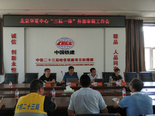 8月5日到8月6日,北京華夏認(rèn)證中心有限公司專家董樹弘、吳遠(yuǎn)征在中鐵二十三局二公司安全總監(jiān)張興威、安質(zhì)部副部長(zhǎng)劉丹丹陪同下在哈佳項(xiàng)目部開展了為期兩天的“三標(biāo)一體”外部審核。