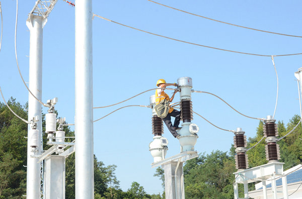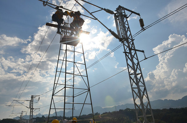 圖為:電力專業(yè)工人們在40度高溫下進行電纜敷設(shè)。