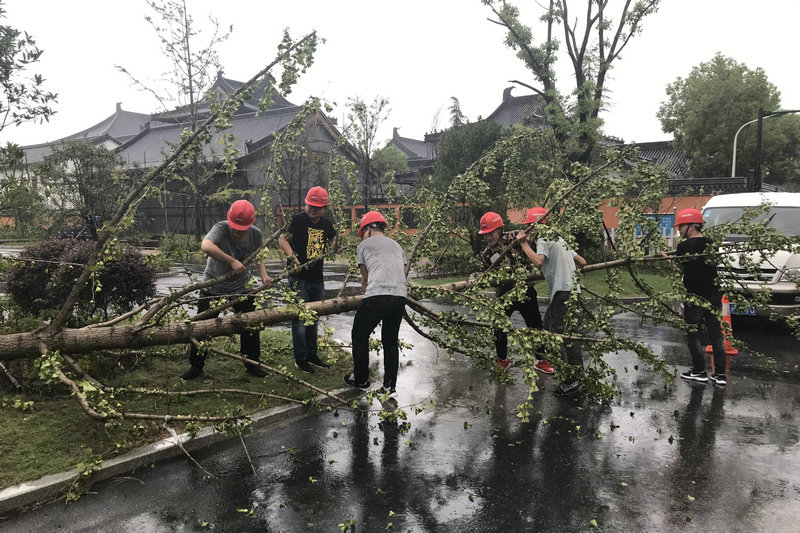 8月10日,今年最強臺風(fēng)“利奇馬”在浙江省沿海登陸。中鐵建大橋局電氣化公司杭州地鐵8號線項目部聞“風(fēng)”而動,提前謀劃部署,通過采取現(xiàn)場安檢、視頻學(xué)習(xí)等多種措施,確保人員、設(shè)備物資的安全。10日下午,項目職工在現(xiàn)場安檢返回途中,發(fā)現(xiàn)蕭山區(qū)創(chuàng)建村主干道旁大樹因經(jīng)不起臺風(fēng)“利奇馬”的肆虐,已被連根拔起倒在路邊,嚴(yán)重影響了交通安全。險情就是命令!在項目書記王志強的帶領(lǐng)下,項目職工冒著強風(fēng)和暴雨搬走倒伏的樹木,清理路面的樹葉、殘枝,及時消除安全隱患,確保交通干道通暢,為百姓出行提供有力保障。