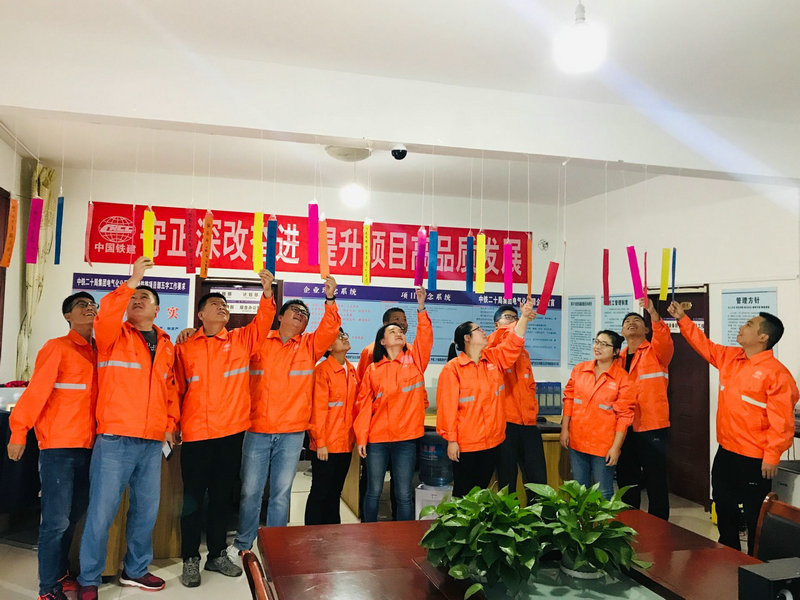 上午8:10時(shí),在項(xiàng)目會議室懸掛著的50多條謎語競相爭輝,營造出一種溫暖祥和、和諧雅致的節(jié)日氣氛。謎面科學(xué)而通俗,有猜字的、有成語的、有人名的、有地名的、有科普知識的、有施工常識的等等,生動而活潑,面廣而量大。在益智添趣、娛樂生活的同時(shí),更以這種傳統(tǒng)高雅的文化形式展示了五字灣項(xiàng)目特色與魅力,集趣味性、知識性于一體,讓大家樂中有學(xué),共同領(lǐng)略傳統(tǒng)文化的無窮奧妙。