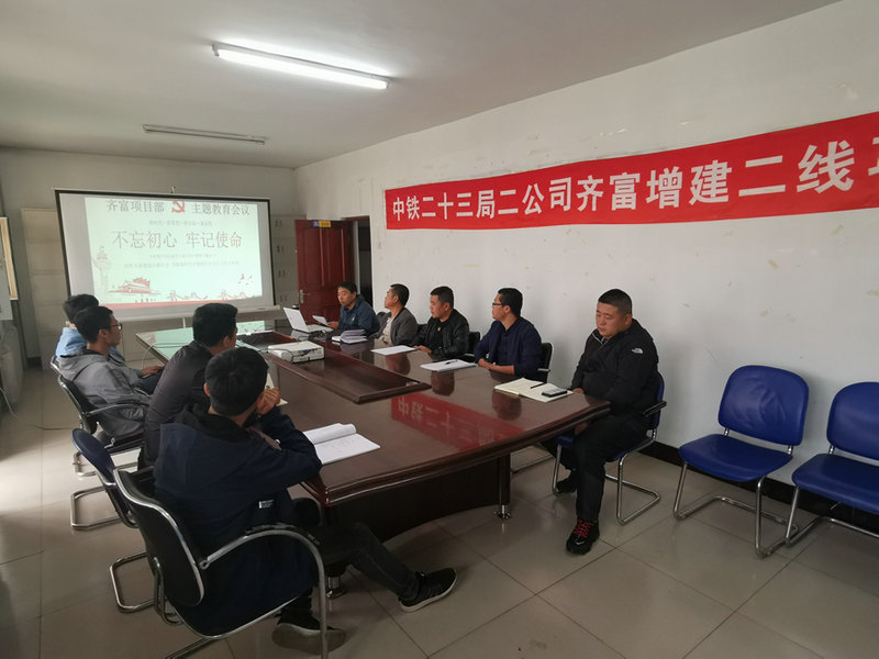 9月20日下午,中鐵二十三局集團二公司齊富增建二線項目部黨支部召開“不忘初心、牢記使命”主題教育會議,會議上由項目黨支部負責人孟曉東主持學習了中共中央、集團公司及二公司主題教育工作會議的精神,動員部署項目黨員干部開展主題教育工作。