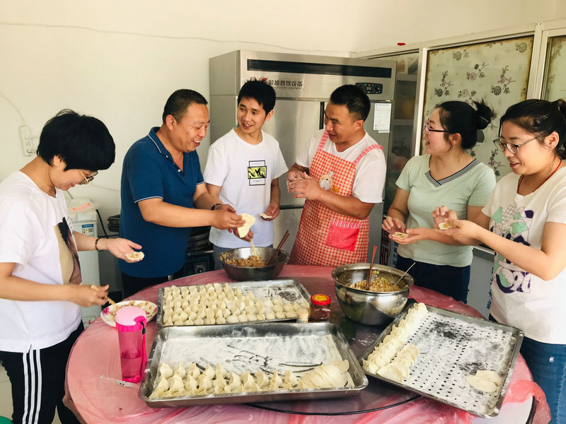 農(nóng)民工兄弟與項(xiàng)目員工一起包餃子,和諧相助