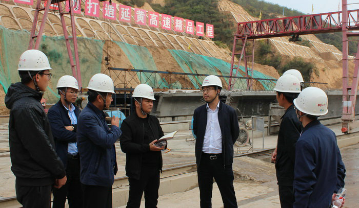 圖為到梁場(chǎng)調(diào)研了解施工情況
