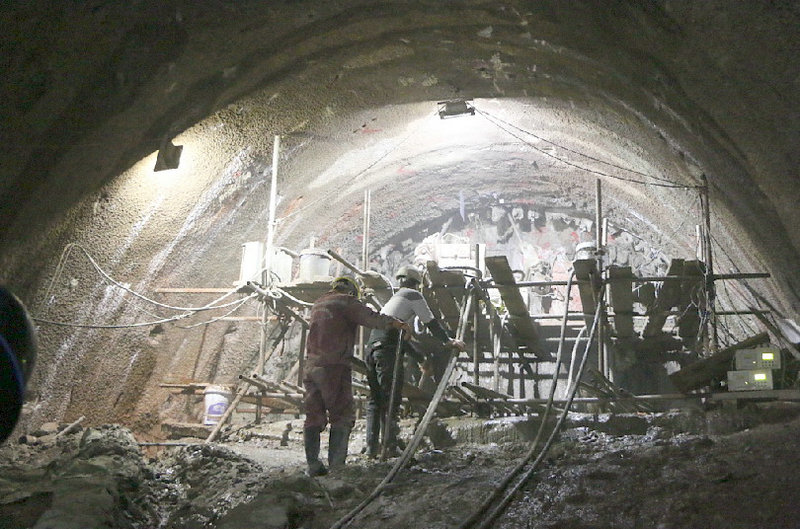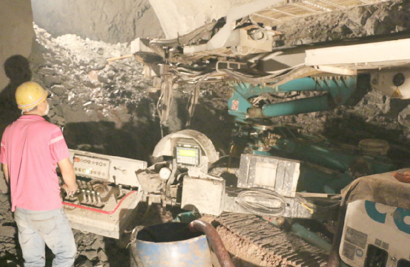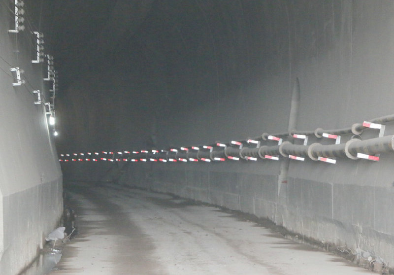 該隧道地質條件復雜,穿越麗江—劍川斷裂、文筆峰2號大斷層,巖溶強發(fā)育。V級圍巖長度2133m,占隧道全長的65.57%,且滲水涌水嚴重。隧道施工中,一直與巖溶、斷層破碎帶、軟土及膨脹土等不良地質相伴,最大日涌水量超過6000立方米,溶洞、突水、突泥、軟巖變形等施工風險極高。隧道施工過程中,為保證質量安全,根據圍巖變化情況,及時調整施工方案,采用三臺階法施工,預留核心土,開挖一榀加固一榀支撐一榀噴護一榀,初期支護、仰拱施作、二次襯砌步步緊跟。對于大變形地段,采用工字鋼橫向支撐、擴大開挖面、預留收斂空間,以保證二次襯砌時的隧道尺寸。在人員盯控方面,實行項目部、分部領導跟班,架子隊、工班負責人帶班,技術人員和安全員、質檢員蹲守現場的前移管理。在進出口、橫洞之間開展了“黨員先鋒崗”、“紅旗責任區(qū)”活動,同時開展“比質量、比安全、比規(guī)范執(zhí)行、比細節(jié)落實、比節(jié)點計劃完成”勞動競賽活動,有效調動了員工積極性。施工中盡管風險極大、困難重重,但全體參建人員膽大心細、嚴守規(guī)范,先后多次克服掌子面溜坍、突泥涌水及軟巖膨脹土變形等地質災害,隧道施工中未發(fā)生一起質量安全事故,實現了安全順利貫通。